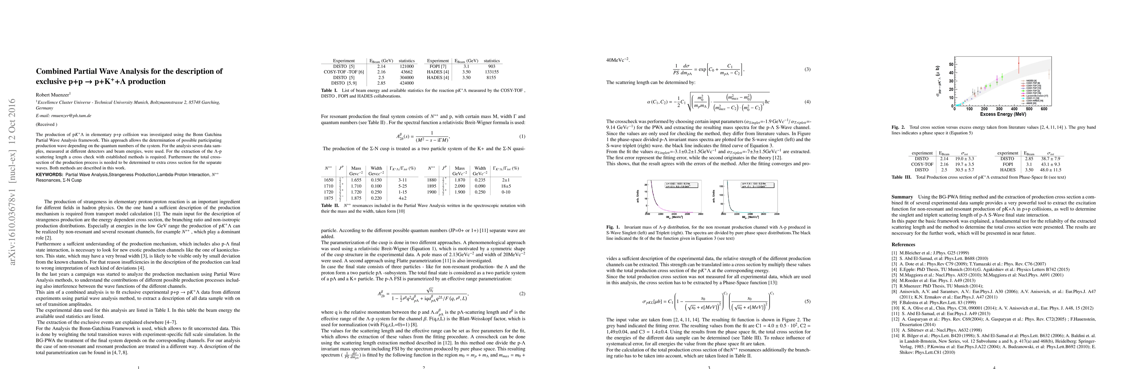 The production of p K+ {\Lambda} in elementary p + p collision was investigated using the Bonn Gatchina Partial Wave Analysis framework. This approach allows the determination of possible participating production wave depending on the quantum numbers of the system. For the analysis seven data samples, measured at different detectors and beam energies, were used.For the extraction of the p{\Lambda} scattering length a cross check with established methods is required. Furthermore the total cross section of the production process is needed to be determined to extra cross section for the separate waves. Both methods are described in this work.
