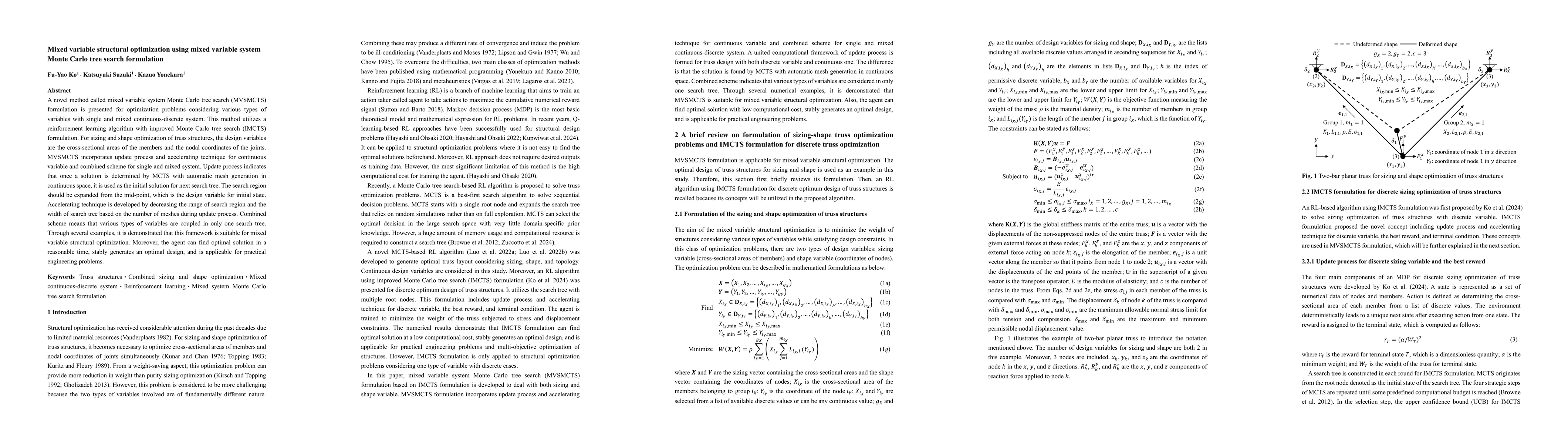 This study employs an update Monte Carlo tree search (UMCTS) algorithm for optimizing both the sizing and layout of truss structures. The UMCTS method, featuring a novel update process for nodal coordinates and accelerators to reduce computation time, outperforms traditional methods in both efficiency and solution quality.