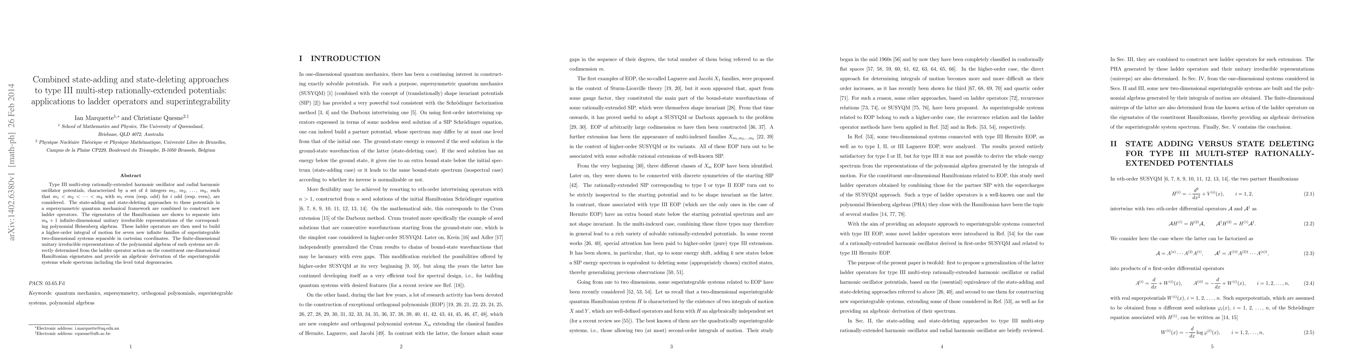 This paper combines state-adding and state-deleting methods to construct new ladder operators for type III multi-step rationally-extended potentials, leading to the discovery of seven new superintegrable two-dimensional systems. The study reveals the separation of Hamiltonian eigenstates into infinite-dimensional representations and provides an algebraic derivation of the systems' spectra and degeneracies.