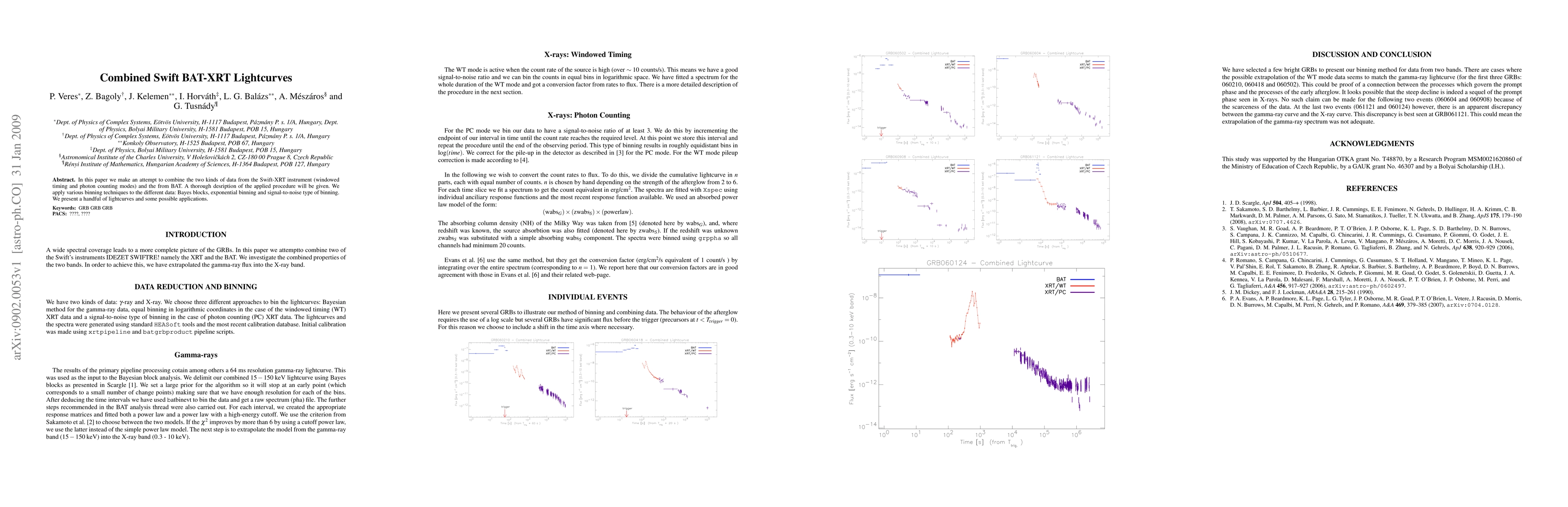 This paper combines data from Swift-XRT's windowed timing and photon counting modes with BAT data, applying various binning techniques for analysis. The study presents several lightcurves and explores potential applications of the combined datasets.