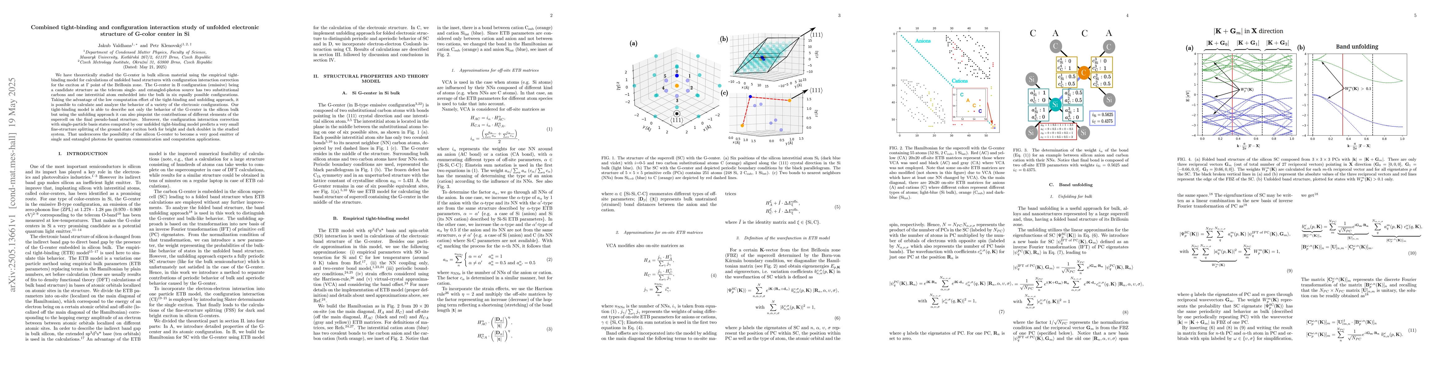 This work differentiates itself by using unfolding techniques to pinpoint supercell contributions, providing a detailed understanding of G-center electronic structure in silicon.