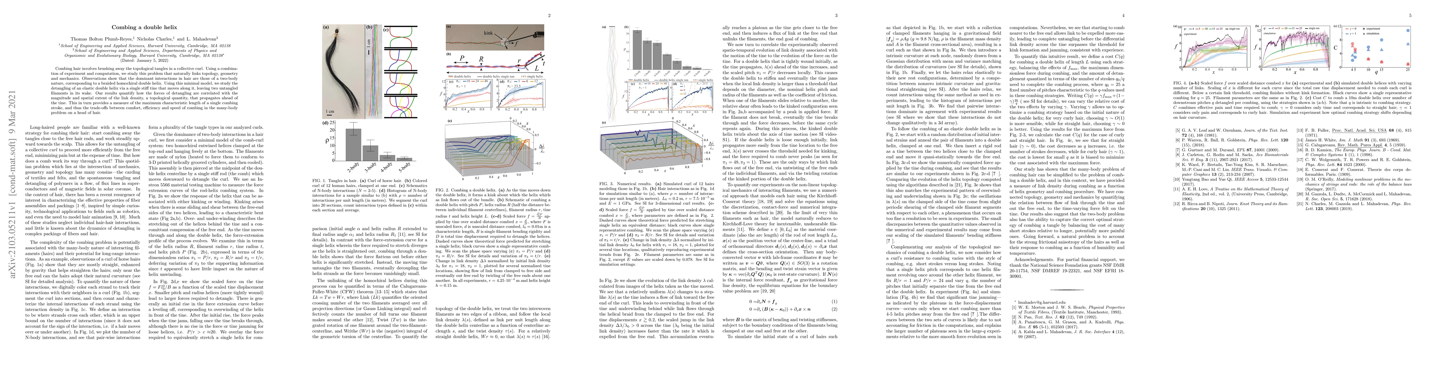 A study uses combing hair as a model to investigate the relationship between topology, geometry, and mechanics, revealing how forces of detangling are correlated with link density and filament length.