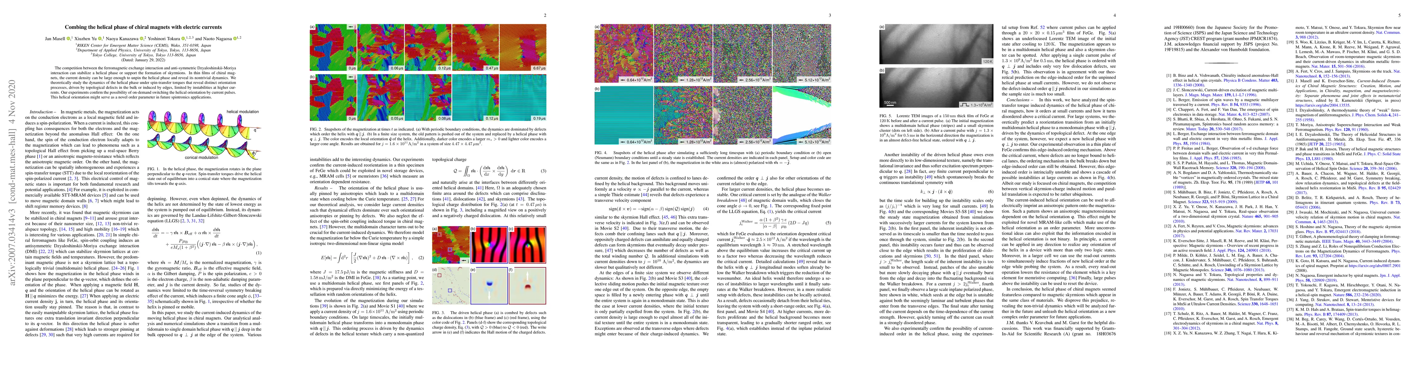 This paper investigates the dynamics of helical phases in chiral magnets under spin-transfer torques, revealing distinct orientation processes driven by topological defects and edges. Experimental results confirm the ability to switch helical orientation with current pulses, suggesting potential for novel spintronics applications.