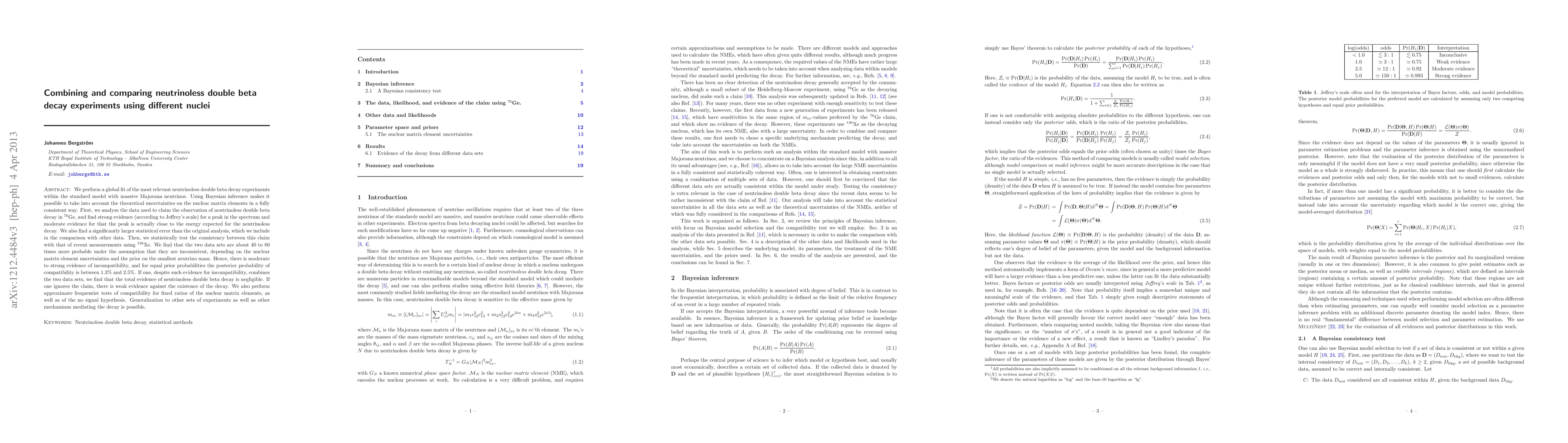 A global analysis of neutrinoless double beta decay experiments finds moderate evidence for incompatibility between results from Ge-76 and Xe-136, but negligible combined evidence when combining the data.
