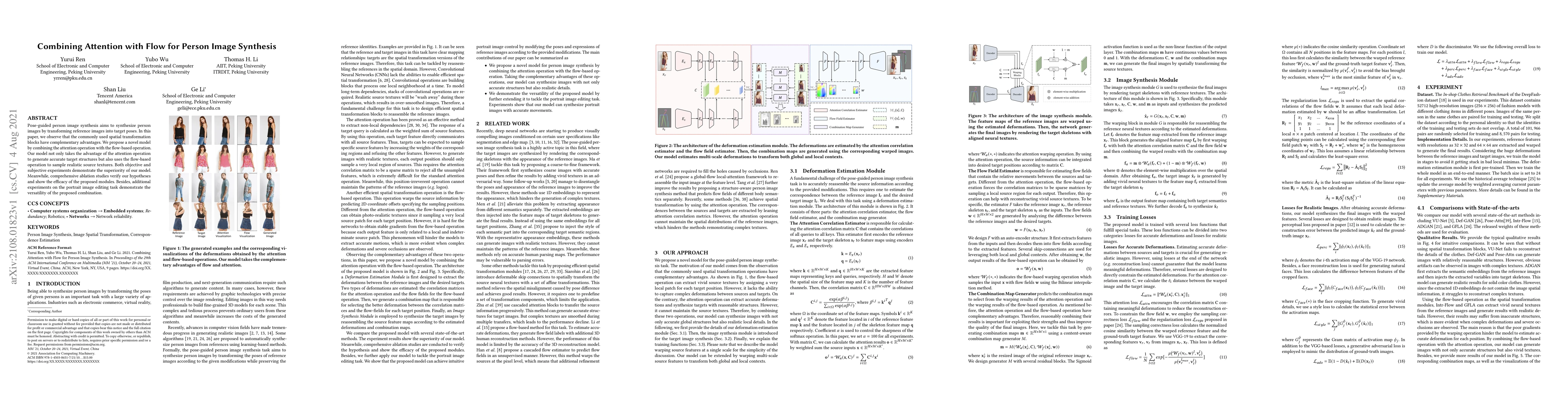 A new model combines attention and flow operations to improve person image synthesis, achieving accurate target structures and realistic source textures. Experimental results demonstrate its superiority in both objective and subjective evaluations.