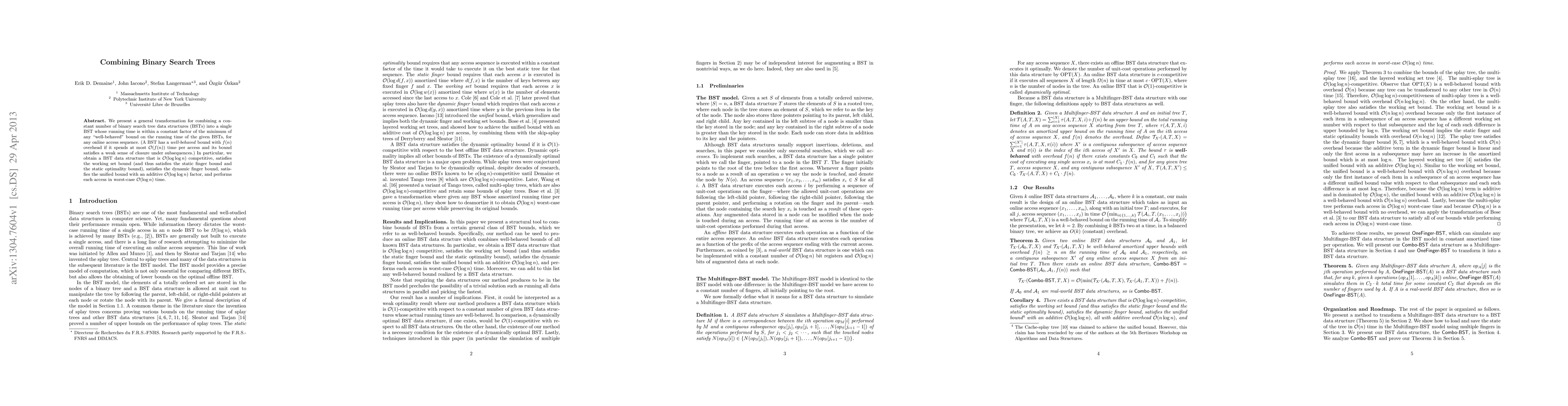 The paper presents a method for combining a constant number of binary search tree (BST) data structures into a single BST, ensuring its running time is within a constant factor of the minimum of any well-behaved bound on the given BSTs' running times for any online access sequence.