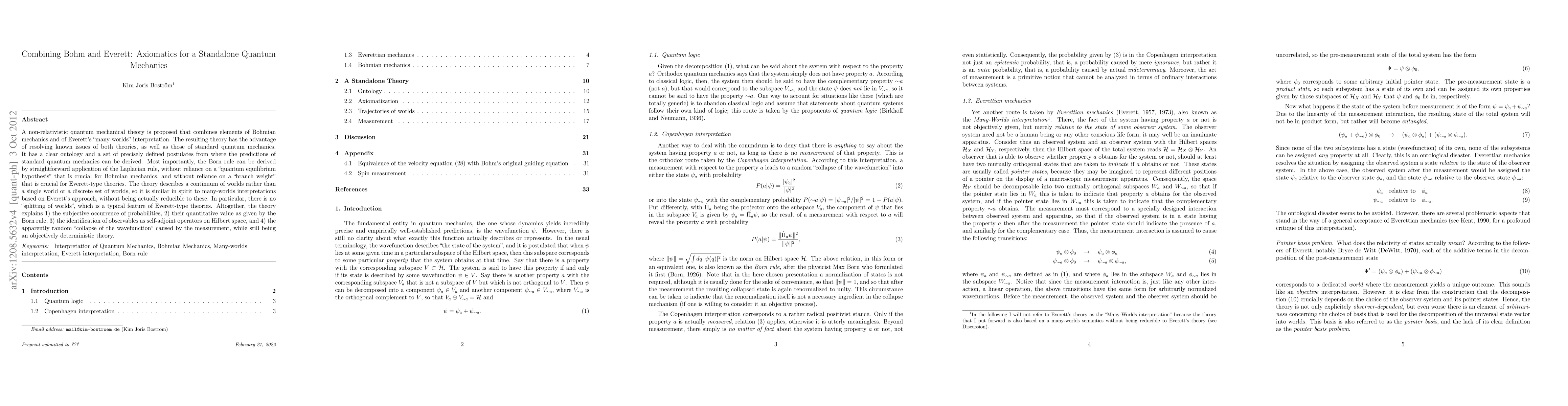 A non-relativistic quantum mechanical theory is proposed that combines elements of Bohmian mechanics and of Everett's "many-worlds" interpretation. The resulting theory has the advantage of resolving known issues of both theories, as well as those of standard quantum mechanics. It has a clear ontology and a set of precisely defined postulates from where the predictions of standard quantum mechanics can be derived. Most importantly, the Born rule can be derived by straightforward application of the Laplacian rule, without reliance on a "quantum equilibrium hypothesis" that is crucial for Bohmian mechanics, and without reliance on a "branch weight" that is crucial for Everett-type theories. The theory describes a continuum of worlds rather than a single world or a discrete set of worlds, so it is similar in spirit to many-worlds interpretations based on Everett's approach, without being actually reducible to these. In particular, there is no "splitting of worlds", which is a typical feature of Everett-type theories. Altogether, the theory explains 1) the subjective occurrence of probabilities, 2) their quantitative value as given by the Born rule, 3) the identification of observables as self-adjoint operators on Hilbert space, and 4) the apparently random "collapse of the wavefunction" caused by the measurement, while still being an objectively deterministic theory.