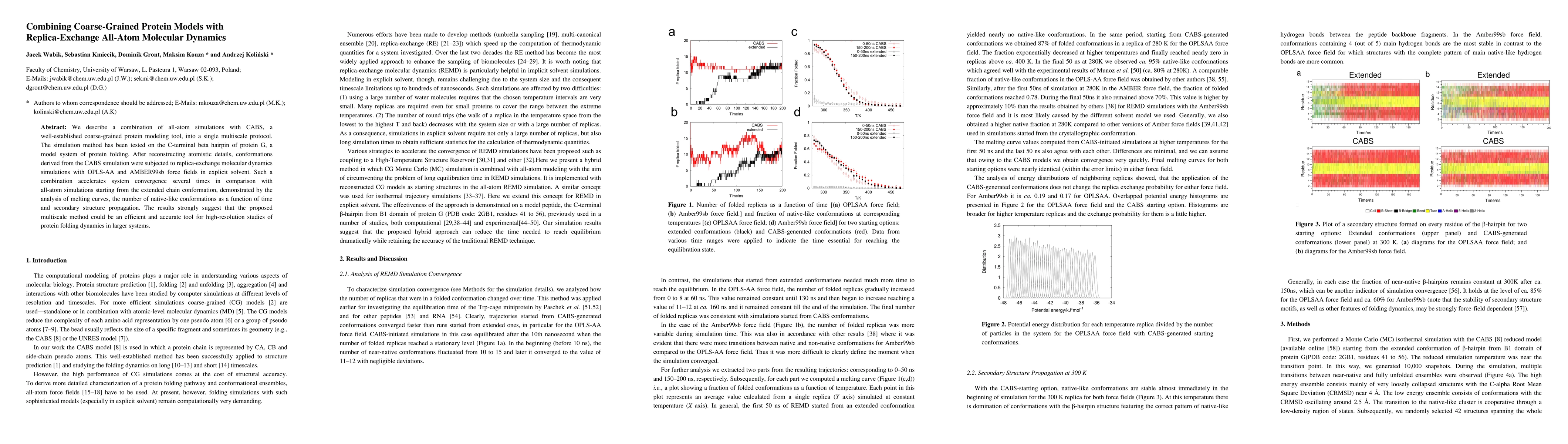 This paper combines coarse-grained protein modeling with replica-exchange all-atom molecular dynamics to accelerate protein folding simulations. The method was tested on the C-terminal beta hairpin of protein G, showing significant convergence improvements and suggesting the potential for high-resolution protein folding studies.