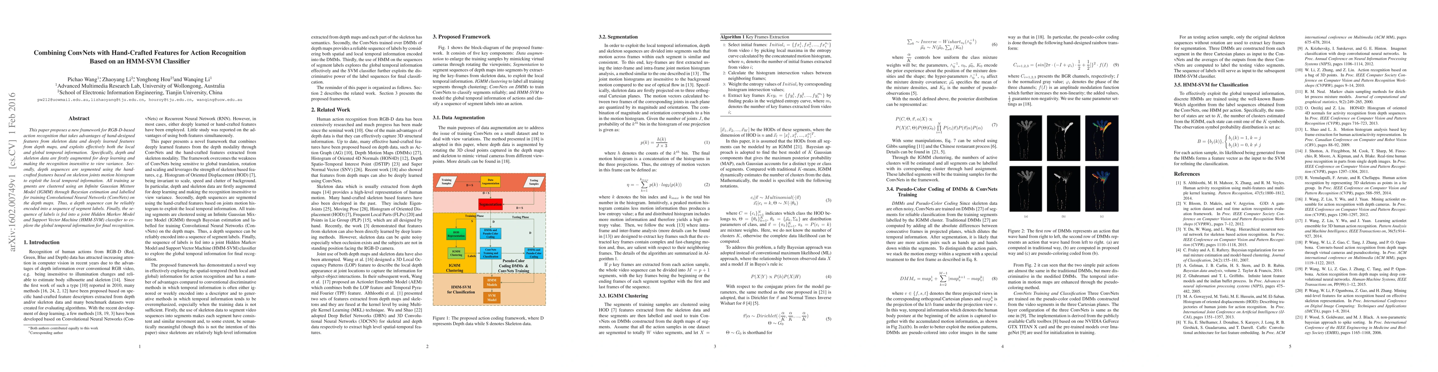This paper introduces a framework for RGB-D-based action recognition that combines hand-crafted skeleton features with deep learning from depth maps, utilizing both local and global temporal information. An HMM-SVM classifier is employed to achieve final recognition after segmenting depth sequences and training ConvNets on depth maps.