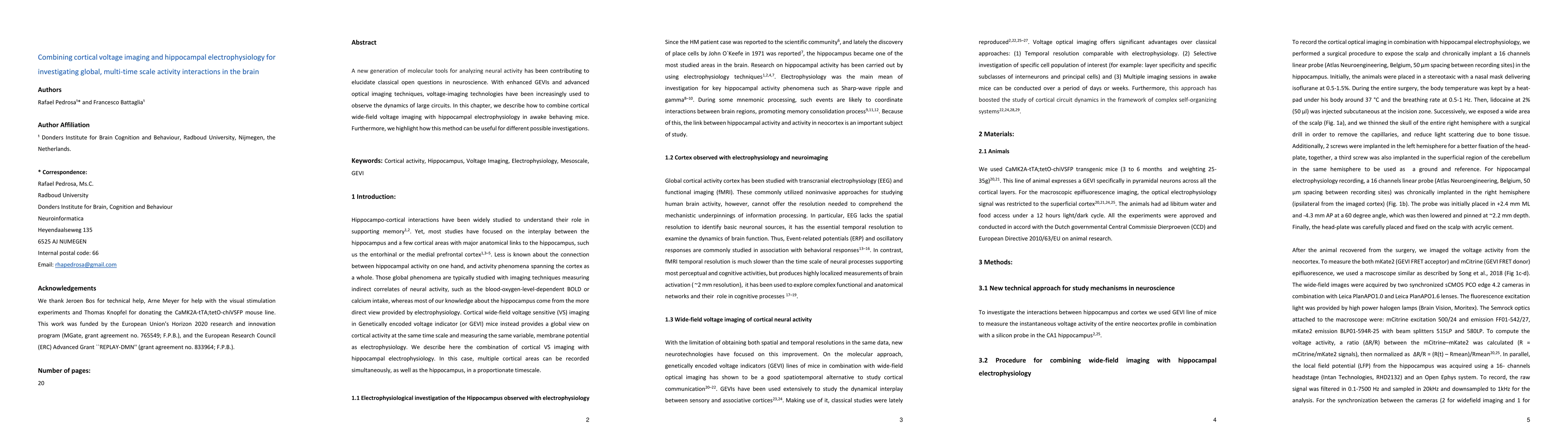 A new generation of molecular tools for analyzing neural activity has been contributing to elucidate classical open questions in neuroscience. With enhanced GEVIs and advanced optical imaging techniques, voltage-imaging technologies have been increasingly used to observe the dynamics of large circuits. In this chapter, we describe how to combine cortical wide-field voltage imaging with hippocampal electrophysiology in awake behaving mice. Furthermore, we highlight how this method can be useful for different possible investigations.