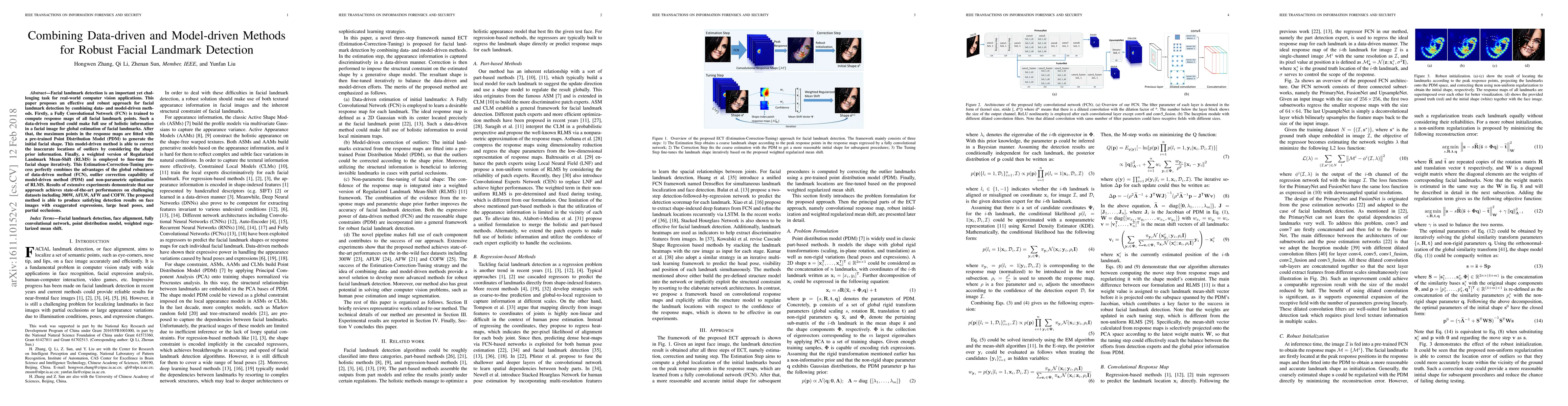 Facial landmark detection is an important yet challenging task for real-world computer vision applications. This paper proposes an effective and robust approach for facial landmark detection by combining data- and model-driven methods. Firstly, a Fully Convolutional Network (FCN) is trained to compute response maps of all facial landmark points. Such a data-driven method could make full use of holistic information in a facial image for global estimation of facial landmarks. After that, the maximum points in the response maps are fitted with a pre-trained Point Distribution Model (PDM) to generate the initial facial shape. This model-driven method is able to correct the inaccurate locations of outliers by considering the shape prior information. Finally, a weighted version of Regularized Landmark Mean-Shift (RLMS) is employed to fine-tune the facial shape iteratively. This Estimation-Correction-Tuning process perfectly combines the advantages of the global robustness of data-driven method (FCN), outlier correction capability of model-driven method (PDM) and non-parametric optimization of RLMS. Results of extensive experiments demonstrate that our approach achieves state-of-the-art performances on challenging datasets including 300W, AFLW, AFW and COFW. The proposed method is able to produce satisfying detection results on face images with exaggerated expressions, large head poses, and partial occlusions.