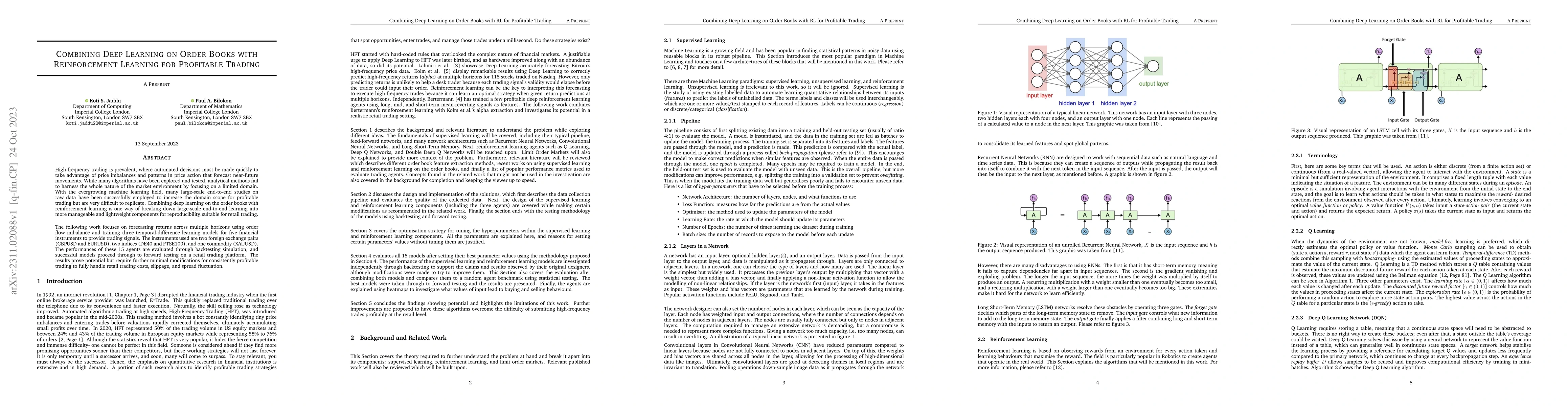 This paper combines deep learning on order books with reinforcement learning to develop a more manageable and reproducible trading strategy for high-frequency trading. The approach forecasts returns across multiple horizons and trains 15 temporal-difference learning models for various financial instruments, showing potential but requiring further adjustments for consistent profitability.