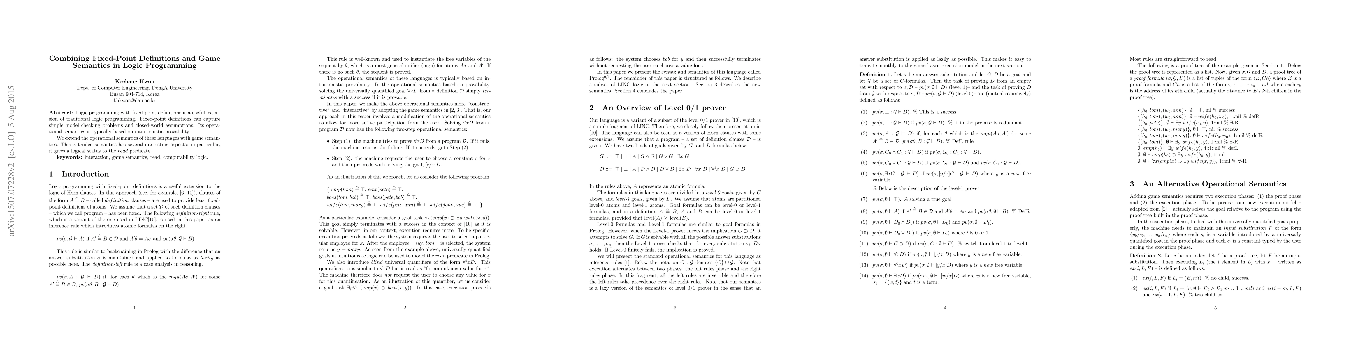 This paper combines fixed-point definitions in logic programming with game semantics to extend operational semantics, providing a logical status for the $read$ predicate and enhancing model checking and closed-world assumptions.