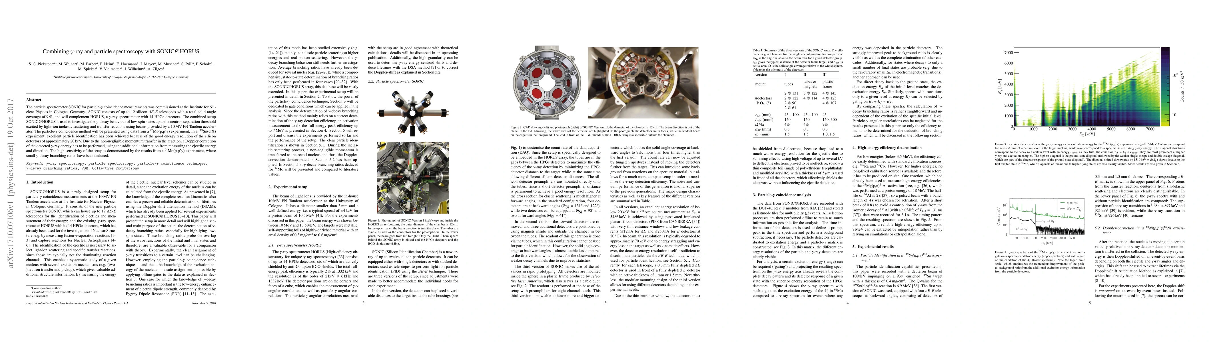 The particle spectrometer SONIC for particle-$\gamma$ coincidence measurements was commissioned at the Institute for Nuclear Physics in Cologne, Germany. SONIC consists of up to 12 silicon $\mathit{\Delta}E$-$E$ telescopes with a total solid angle coverage of 9%, and will complement HORUS, a $\gamma$-ray spectrometer with 14 HPGe detectors. The combined setup SONIC@HORUS is used to investigate the $\gamma$-decay behaviour of low-spin states up to the neutron separation threshold excited by light-ion inelastic scattering and transfer reactions using beams provided by a 10 MV FN Tandem accelerator. The particle-$\gamma$ coincidence method will be presented using data from a $^{92}$Mo(p,p'$\gamma$) experiment. In a $^{119}$Sn(d,X) experiment, excellent particle identification has been achieved because of the good energy resolution of the silicon detectors of approximately 20 keV. Due to the non-negligible momentum transfer in the reaction, a Doppler correction of the detected $\gamma$-ray energy has to be performed, using the additional information from measuring the ejectile energy and direction. The high sensitivity of the setup is demonstrated by the results from a $^{94}$Mo(p,p'$\gamma$) experiment, where small $\gamma$-decay branching ratios have been deduced.