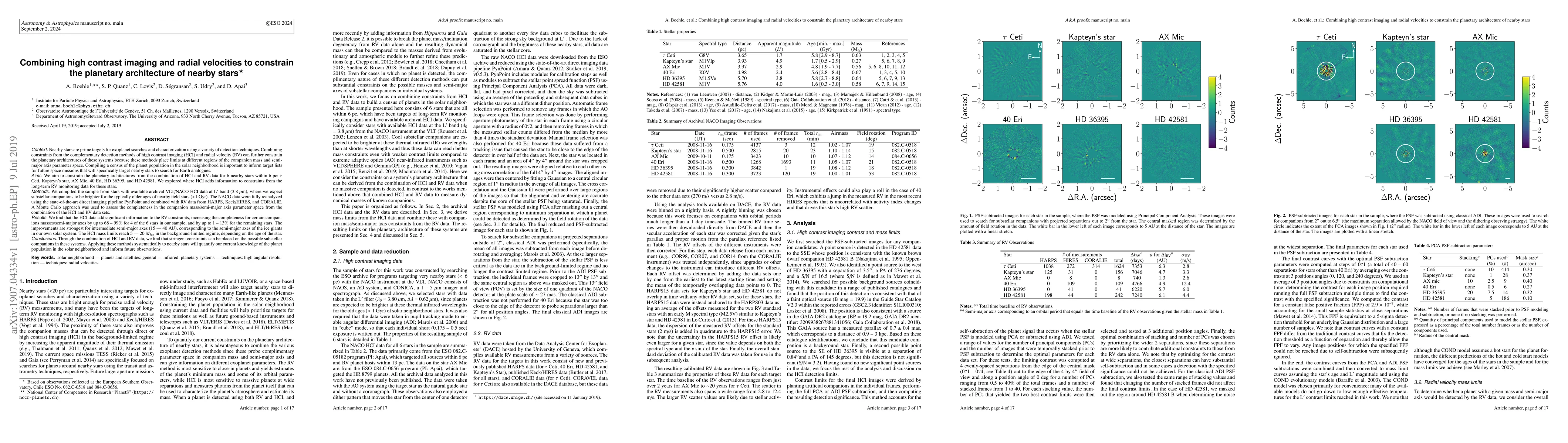 This paper combines high contrast imaging and radial velocity data to better understand the planetary architectures of six nearby stars, finding significant improvements in constraints on substellar companions, especially for intermediate semi-major axes. The integration of these methods enhances detection completeness for certain masses and distances.