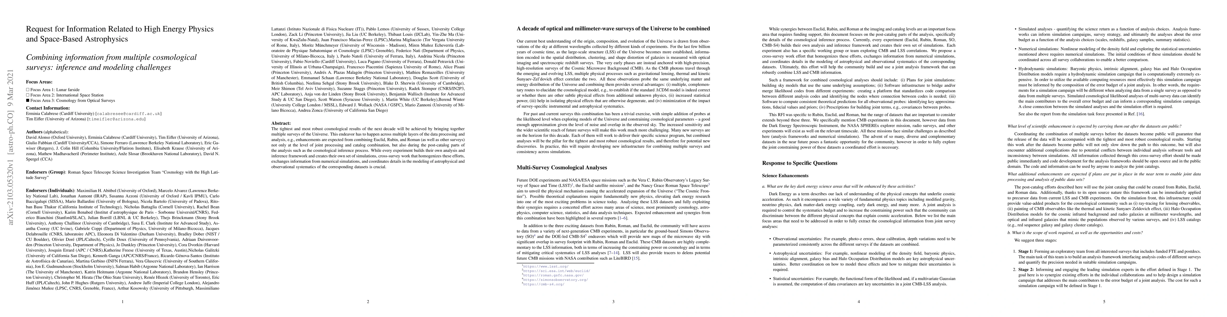 The tightest and most robust cosmological results of the next decade will be achieved by bringing together multiple surveys of the Universe. This endeavor has to happen across multiple layers of the data processing and analysis, e.g., enhancements are expected from combining Euclid, Rubin, and Roman (as well as other surveys) not only at the level of joint processing and catalog combination, but also during the post-catalog parts of the analysis such as the cosmological inference process. While every experiment builds their own analysis and inference framework and creates their own set of simulations, cross-survey work that homogenizes these efforts, exchanges information from numerical simulations, and coordinates details in the modeling of astrophysical and observational systematics of the corresponding datasets is crucial.