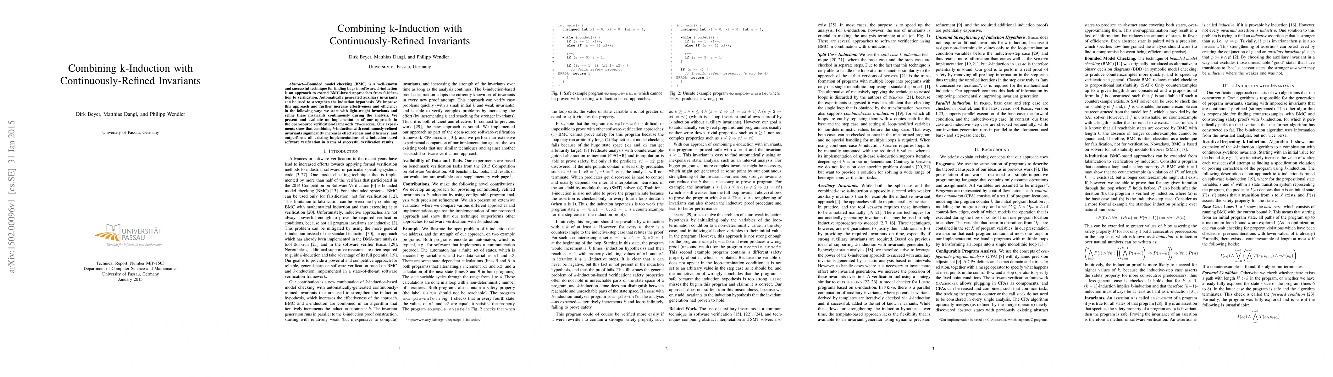 This paper proposes an enhanced k-induction method for software verification using continuously refined invariants in the CPAchecker framework, which significantly improves both effectiveness and efficiency compared to existing k-induction implementations. Experimental results demonstrate superior performance in successful verification outcomes.