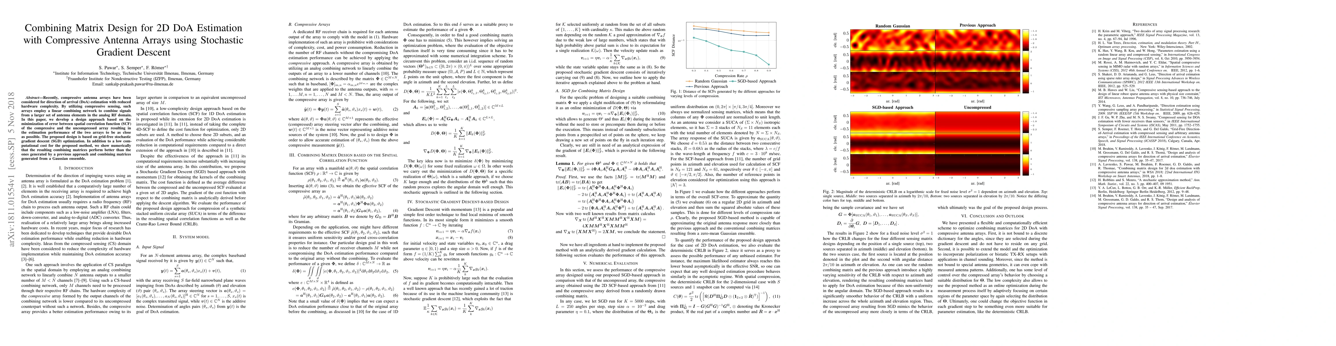 This paper proposes a novel design for compressive antenna arrays using stochastic gradient descent to minimize the error between spatial correlation functions, achieving better performance than previous methods and Gaussian ensembles while maintaining low computational cost. The approach aims to enhance direction-of-arrival estimation with reduced hardware complexity.