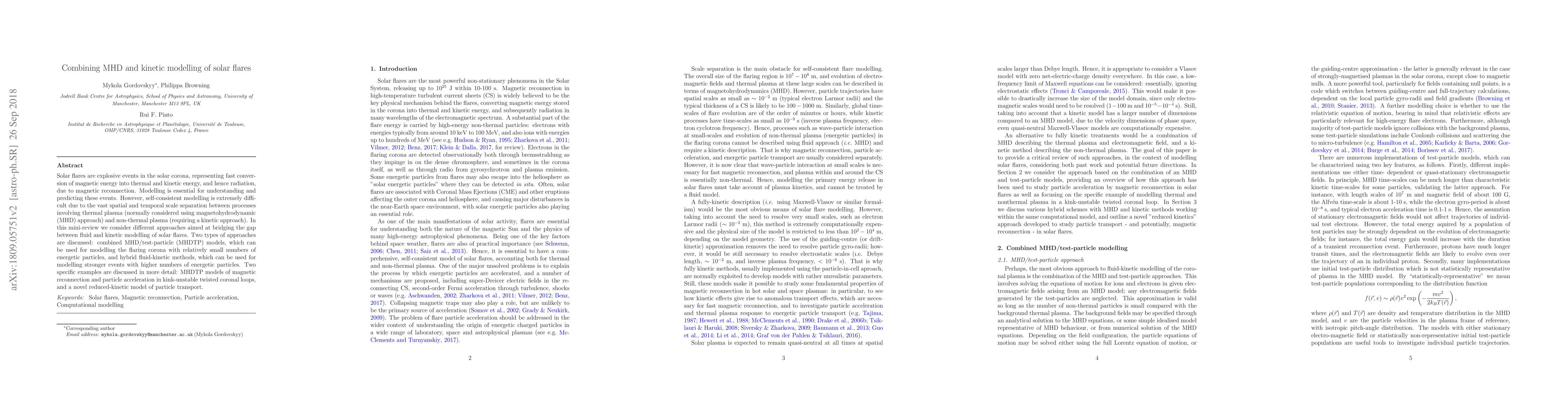 This paper reviews methods for combining MHD and kinetic modelling to better understand solar flares, focusing on MHD/test-particle models and hybrid fluid-kinetic methods. It highlights specific examples like MHDTP models for magnetic reconnection and a novel reduced-kinetic model for particle transport.
