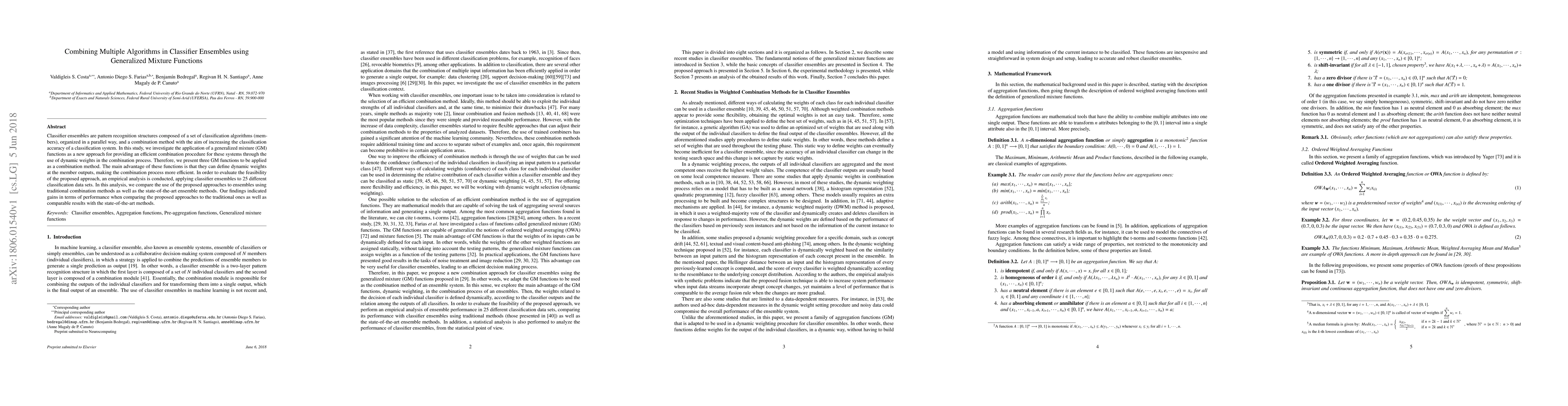 This paper proposes generalized mixture functions as a new combination method for classifier ensembles, utilizing dynamic weights to enhance classification accuracy. Empirical analysis on 25 datasets shows improved performance over traditional methods and comparable results to state-of-the-art ensemble techniques.