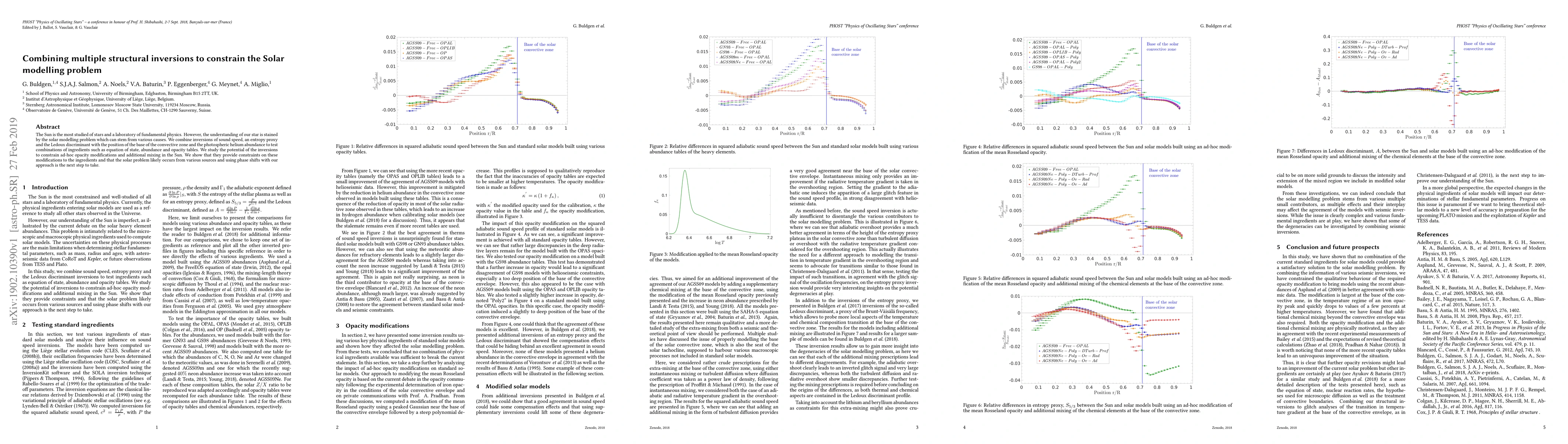 This paper combines multiple structural inversions of sound speed, entropy, and the Ledoux discriminant to constrain the solar modelling problem. The study finds that these inversions effectively constrain ad-hoc opacity modifications and additional mixing, suggesting that the solar modelling problem likely arises from various sources, with phase shifts being a promising next step.