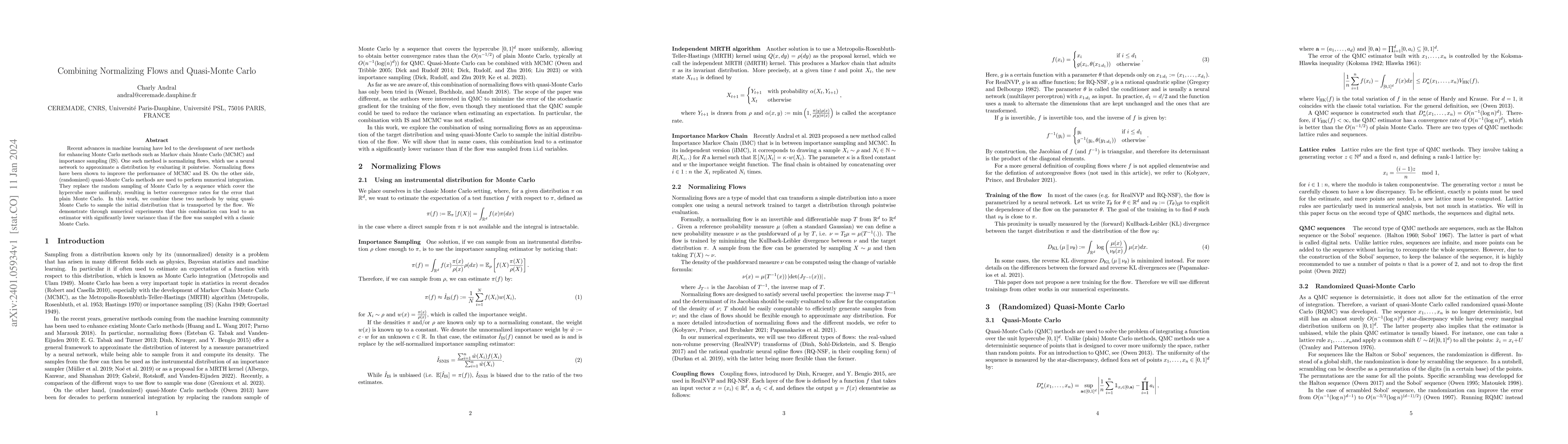 This paper combines normalizing flows with quasi-Monte Carlo methods to enhance Monte Carlo estimators. By using quasi-Monte Carlo for sampling the initial distribution, the resulting estimator shows significantly lower variance compared to traditional Monte Carlo sampling.
