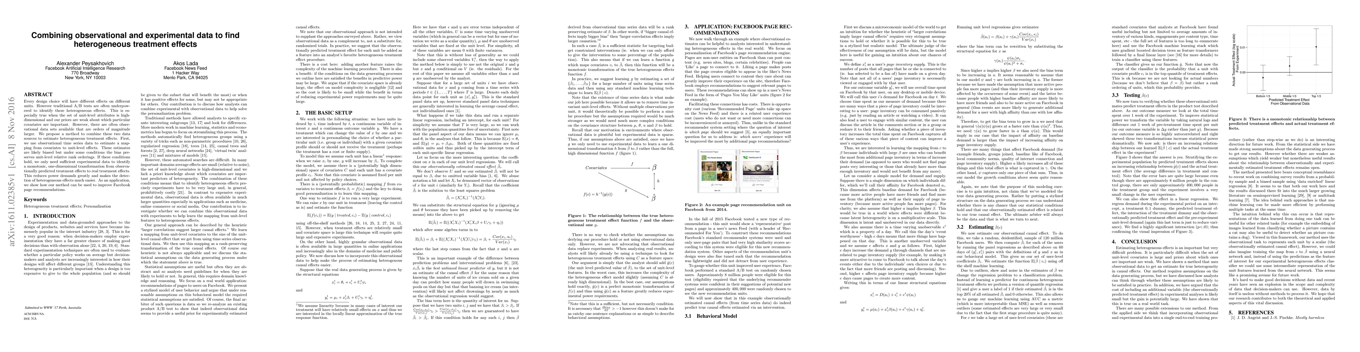 Every design choice will have different effects on different units. However traditional A/B tests are often underpowered to identify these heterogeneous effects. This is especially true when the set of unit-level attributes is high-dimensional and our priors are weak about which particular covariates are important. However, there are often observational data sets available that are orders of magnitude larger. We propose a method to combine these two data sources to estimate heterogeneous treatment effects. First, we use observational time series data to estimate a mapping from covariates to unit-level effects. These estimates are likely biased but under some conditions the bias preserves unit-level relative rank orderings. If these conditions hold, we only need sufficient experimental data to identify a monotonic, one-dimensional transformation from observationally predicted treatment effects to real treatment effects. This reduces power demands greatly and makes the detection of heterogeneous effects much easier. As an application, we show how our method can be used to improve Facebook page recommendations.