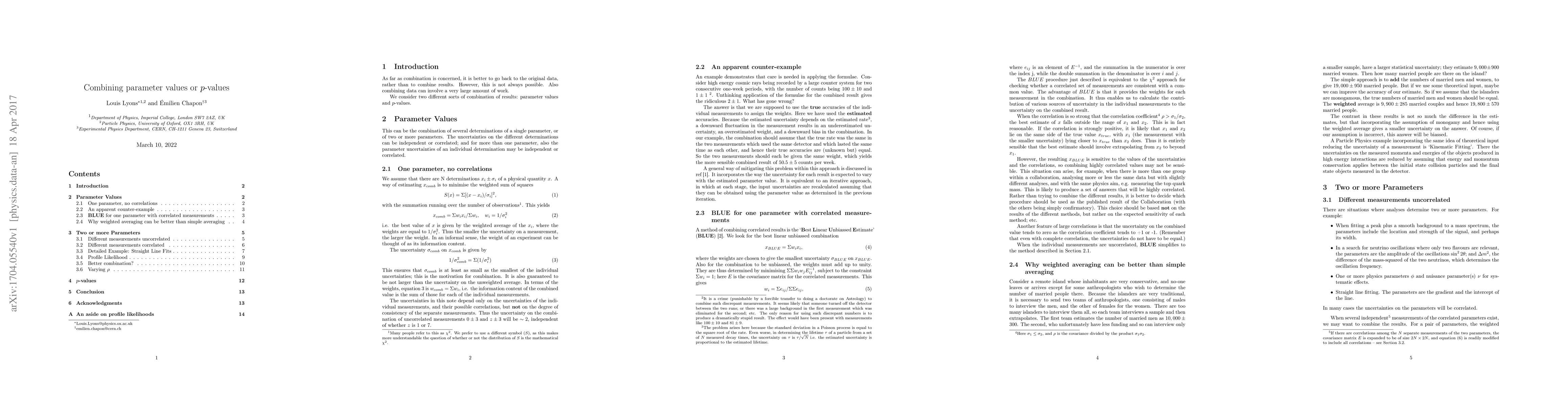 We review the methods to combine several measurements, in the form of parameter values or $p$-values.