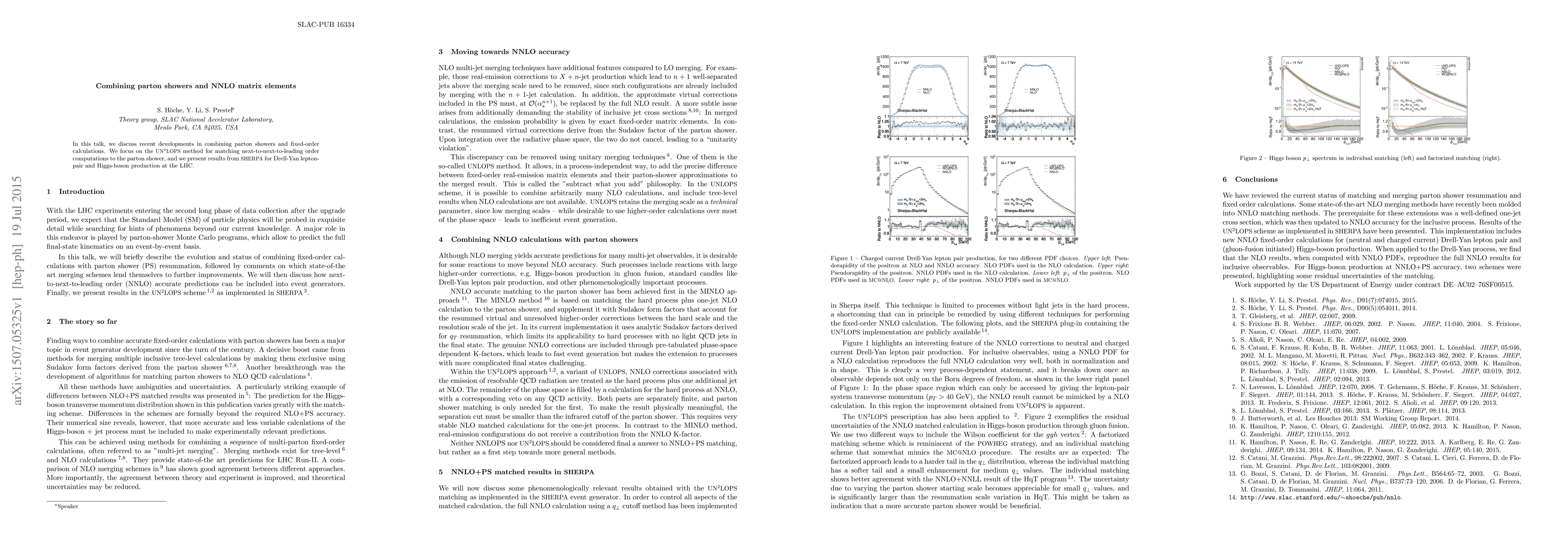In this talk, we discuss recent developments in combining parton showers and fixed-order calculations. We focus on the UNNLOPS method for matching next-to-next-to-leading order computations to the parton shower, and we present results from Sherpa for Drell-Yan lepton-pair and Higgs-boson production at the LHC.