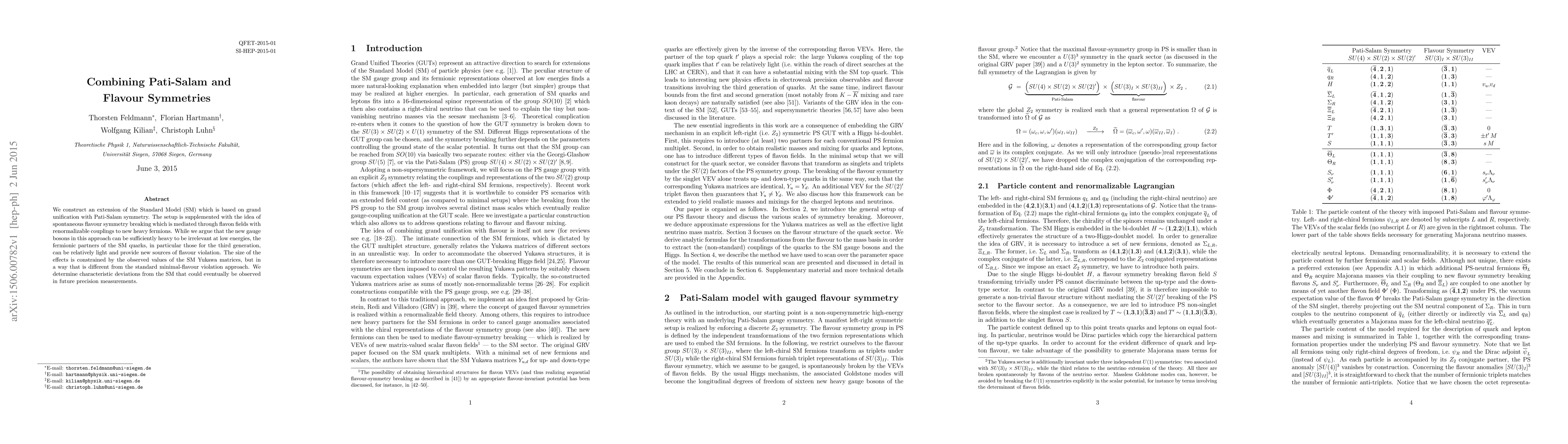 This paper proposes an extended Standard Model based on Pati-Salam symmetry and spontaneous flavour symmetry breaking, introducing new heavy fermions and light fermionic partners for SM quarks, particularly those of the third generation. Future precision measurements may reveal deviations from the Standard Model due to these new particles.