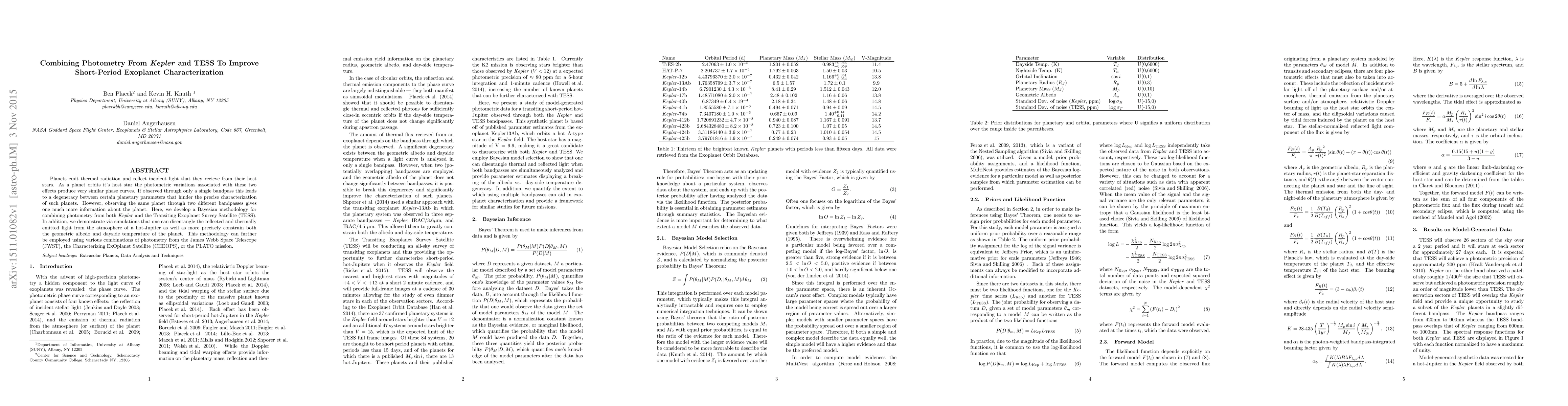 This paper presents a Bayesian method to combine photometry from Kepler and TESS for better characterization of short-period exoplanets, demonstrating improved disentanglement of reflected and thermal light and more precise constraints on planetary parameters. The approach can be extended to data from JWST, CHEOPS, and PLATO.