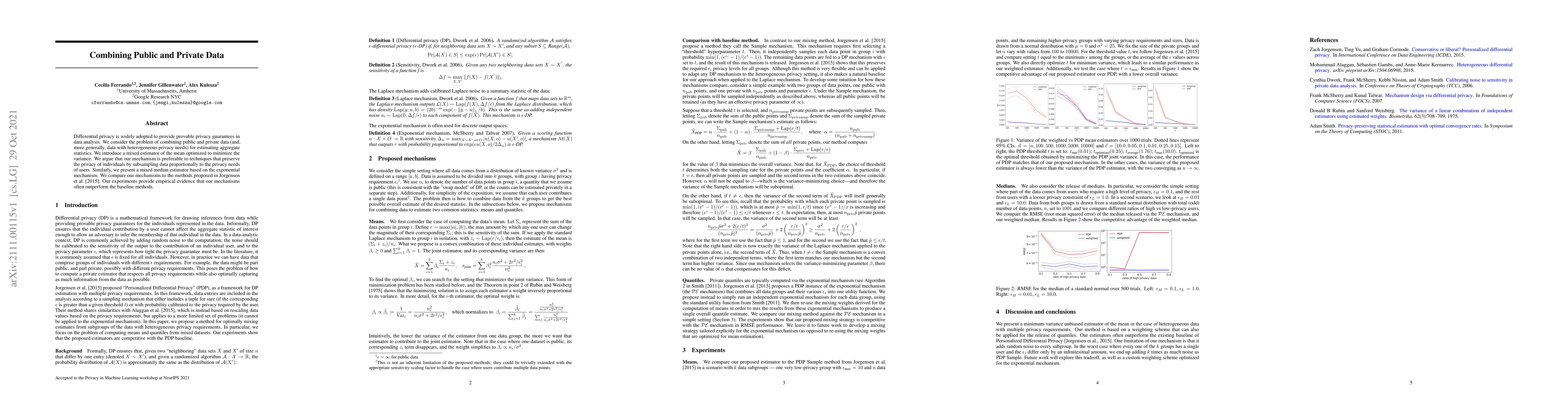 This work introduces a novel approach to combining public and private data, leveraging the properties of mixed estimators and weighted averages.