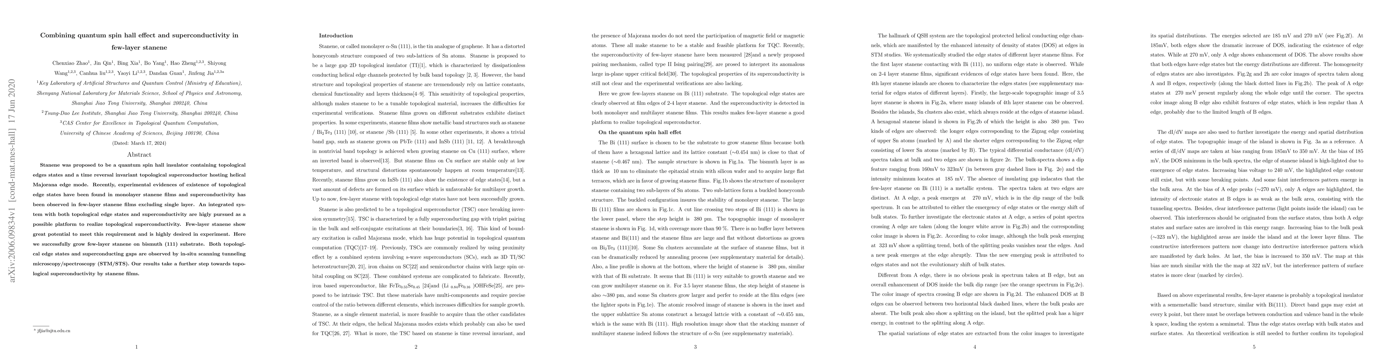 Research paper combines quantum spin Hall effect and superconductivity in few-layer stanene, successfully growing the material on a bismuth substrate. Both topological edge states and superconducting gaps were observed via in-situ scanning tunneling microscopy/spectroscopy, advancing the potential for topological superconductivity.