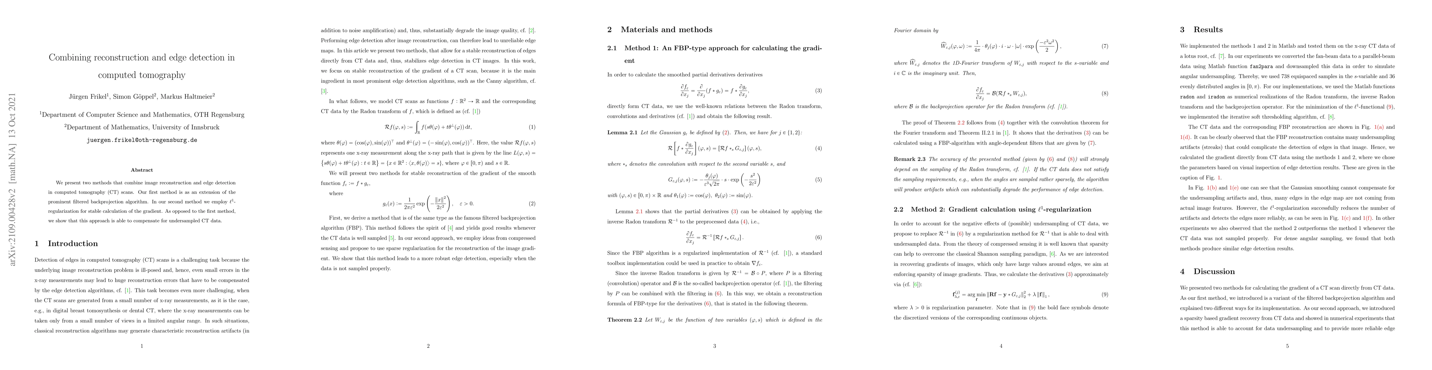Researchers developed two methods to combine image reconstruction and edge detection in CT scans, improving accuracy with undersampled data, one using filtered backprojection and the other with $ ext{l}^{1}$-regularization.
