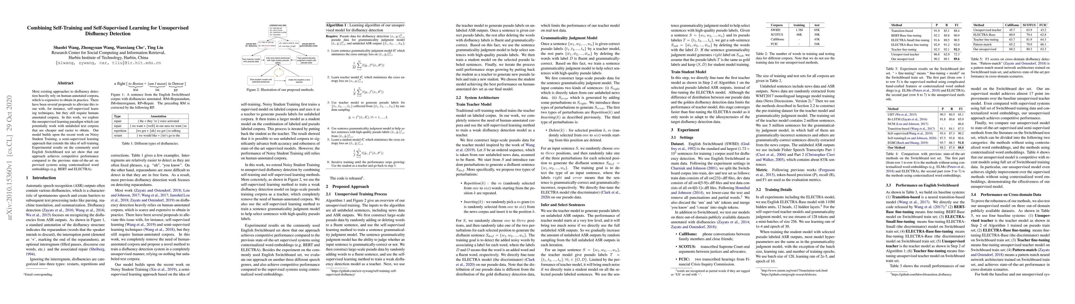 Researchers developed an unsupervised disfluency detection model that outperforms state-of-the-art supervised systems using contextualized word embeddings. The model uses a combination of self-training and self-supervised learning techniques to achieve competitive performance without relying on human-annotated corpora.