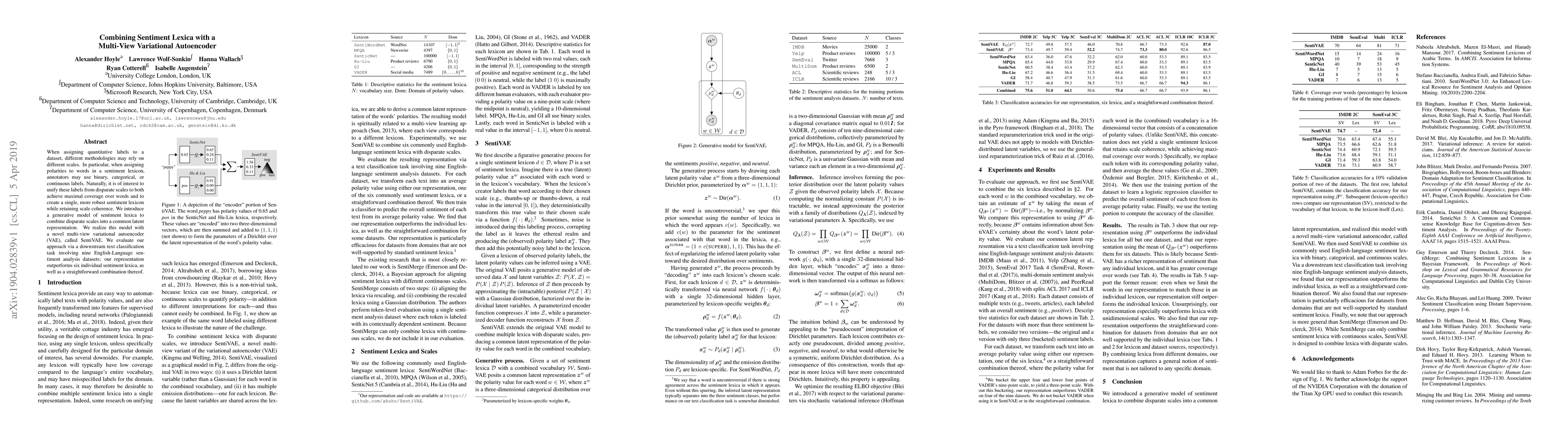This paper introduces SentiVAE, a novel model that combines sentiment lexica with different scales into a common latent representation to create a single, more robust sentiment lexicon. It outperforms individual sentiment lexica and a straightforward combination in downstream text classification tasks.