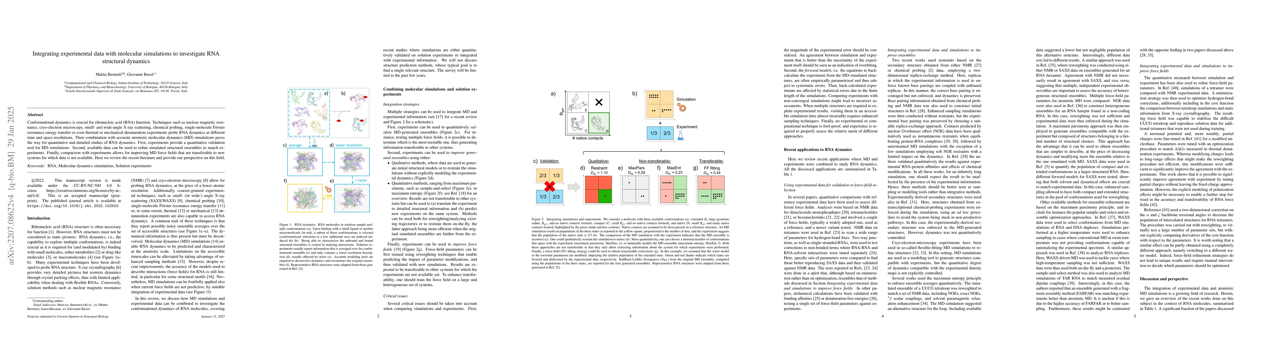 This paper reviews the integration of experimental techniques and molecular dynamics simulations to study RNA conformational dynamics, emphasizing the importance of combining these methods for detailed and quantitative analysis, and highlighting how experiments validate and refine simulations, ultimately improving force fields for new systems.
