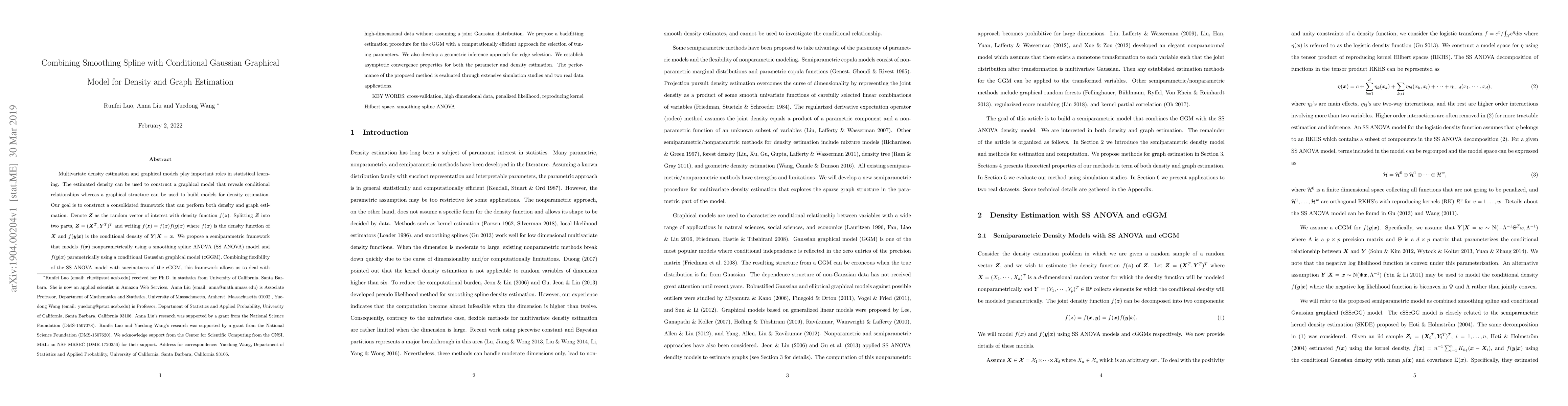 This paper proposes a semiparametric framework combining smoothing spline ANOVA with conditional Gaussian graphical models for joint density and graph estimation in high-dimensional data. The method uses backfitting for parameter estimation and geometric inference for edge selection, demonstrating performance through simulations and real data applications.