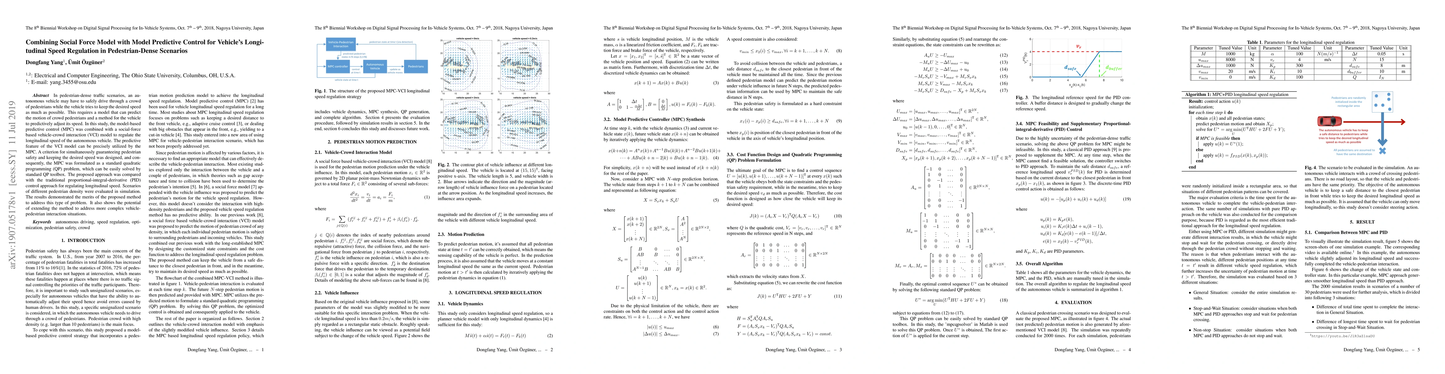 This paper combines model predictive control (MPC) with a social-force based vehicle-crowd interaction (VCI) model to regulate the longitudinal speed of autonomous vehicles in pedestrian-dense scenarios. The proposed method effectively balances pedestrian safety and vehicle speed, outperforming traditional PID control in simulations.