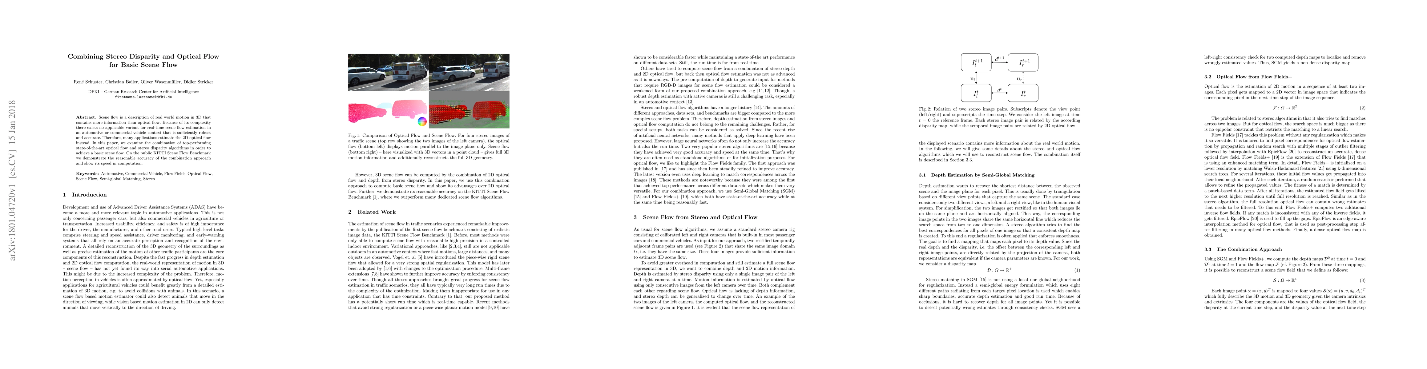 This paper combines state-of-the-art optical flow and stereo disparity algorithms to achieve a robust and accurate basic scene flow estimation, demonstrating reasonable accuracy and computational speed on the KITTI Scene Flow Benchmark.