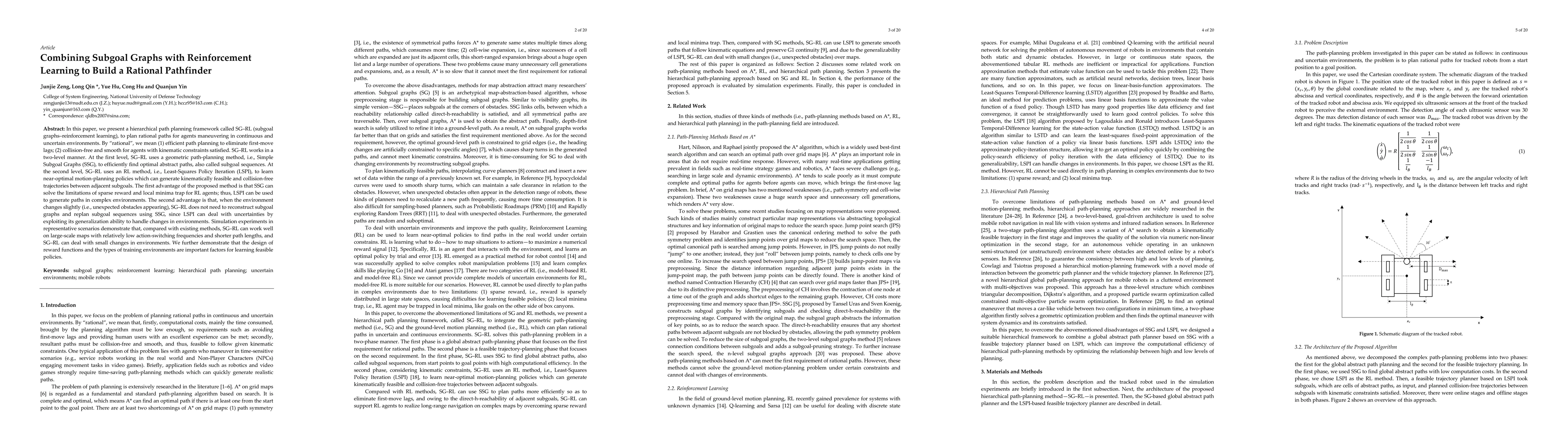This paper introduces SG-RL, a hierarchical path planning framework combining subgoal graphs and reinforcement learning to efficiently and rationally navigate agents in uncertain environments. The method uses Simple Subgoal Graphs for optimal abstract path planning and Least-Squares Policy Iteration for near-optimal motion planning, demonstrating robustness to environmental changes and efficient performance in simulations.