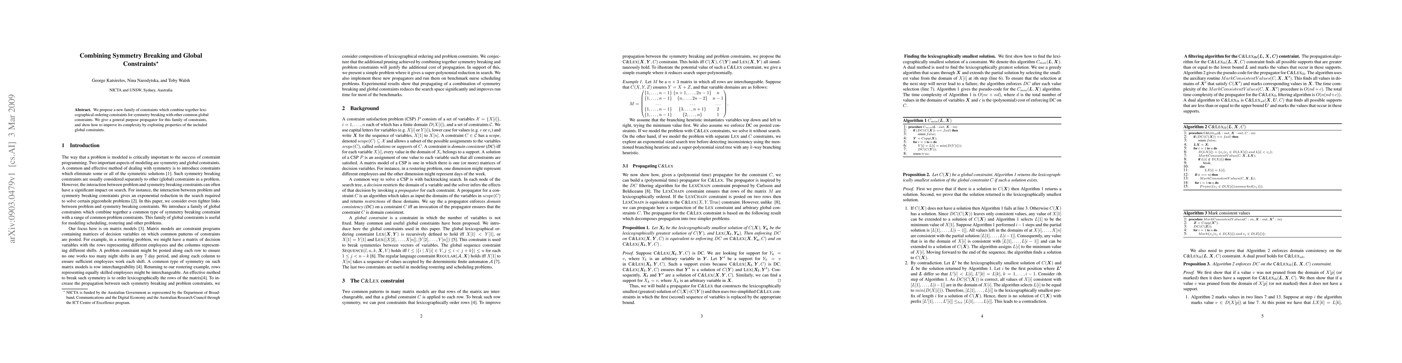 This paper introduces a new set of constraints that merge lexicographical ordering for symmetry breaking with various global constraints, providing a general propagator and demonstrating complexity improvements through the exploitation of global constraint properties.