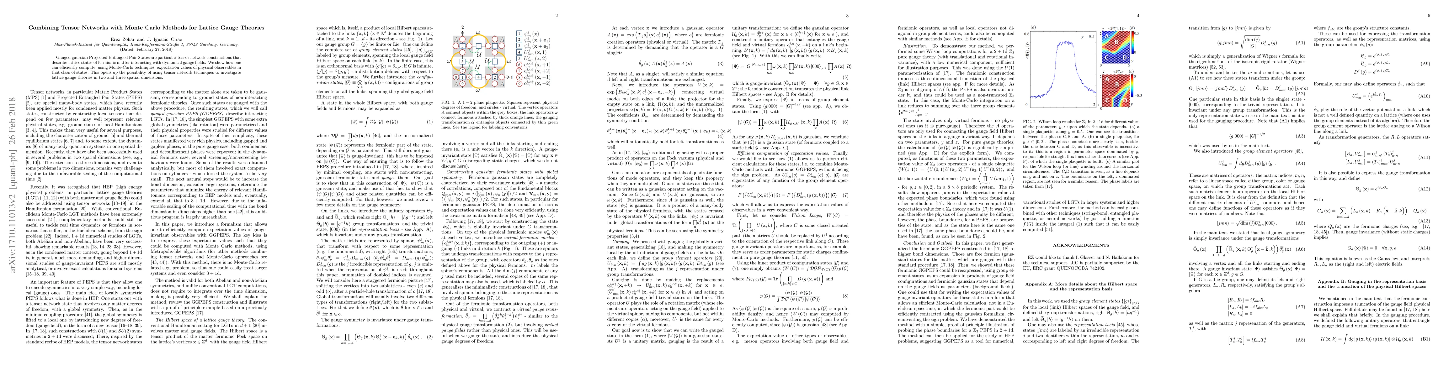 This paper combines tensor networks with Monte Carlo methods to efficiently compute expectation values of physical observables in gauged gaussian Projected Entangled Pair States, enabling the investigation of lattice gauge theories in higher dimensions. The approach leverages tensor network techniques for simulating fermionic matter interacting with gauge fields.