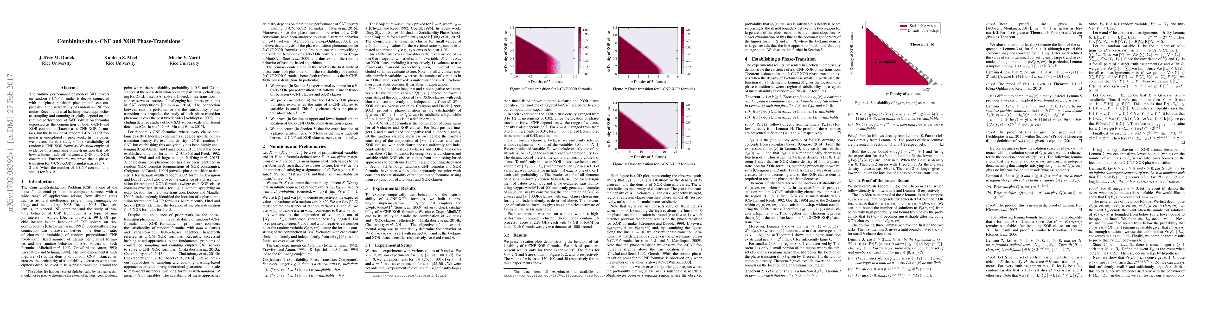 This paper investigates the satisfiability of random $k$-CNF-XOR formulas, revealing a phase-transition phenomenon with a linear trade-off between $k$-CNF and XOR constraints. It provides empirical evidence and theoretical proofs of this transition, particularly for $k = 2$ and small numbers of $k$-CNF constraints for $k > 2$.