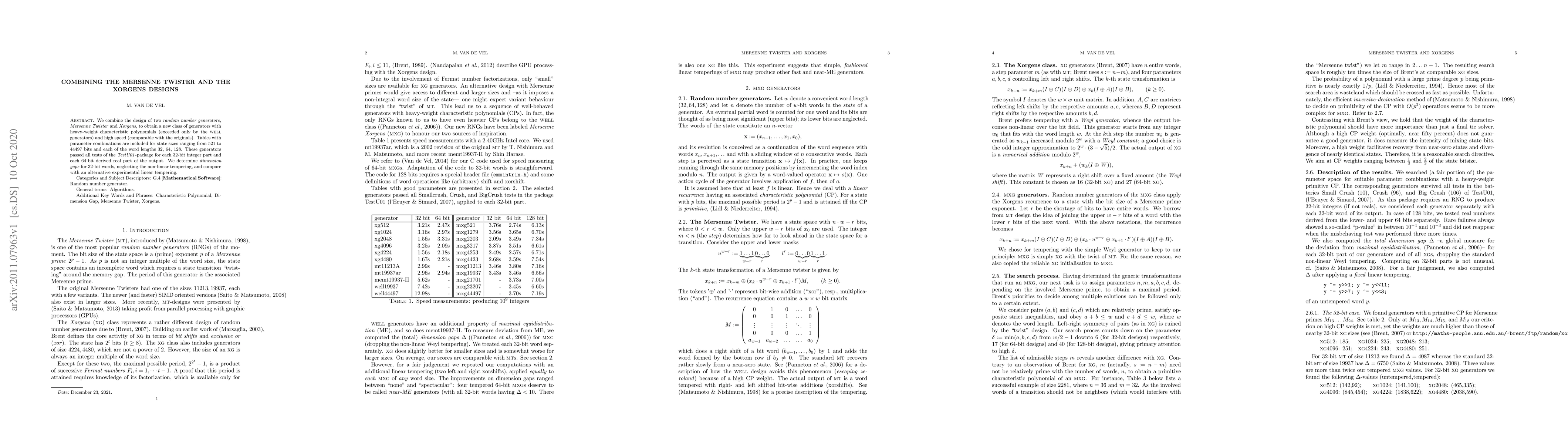 This paper introduces a new class of random number generators combining the Mersenne Twister and the Xorgens designs, achieving high-speed performance and heavy-weight characteristic polynomials. The new generators passed all TestU01 tests for both 32-bit integers and 64-bit real outputs, and the study compares dimension gaps with alternative linear tempering methods.