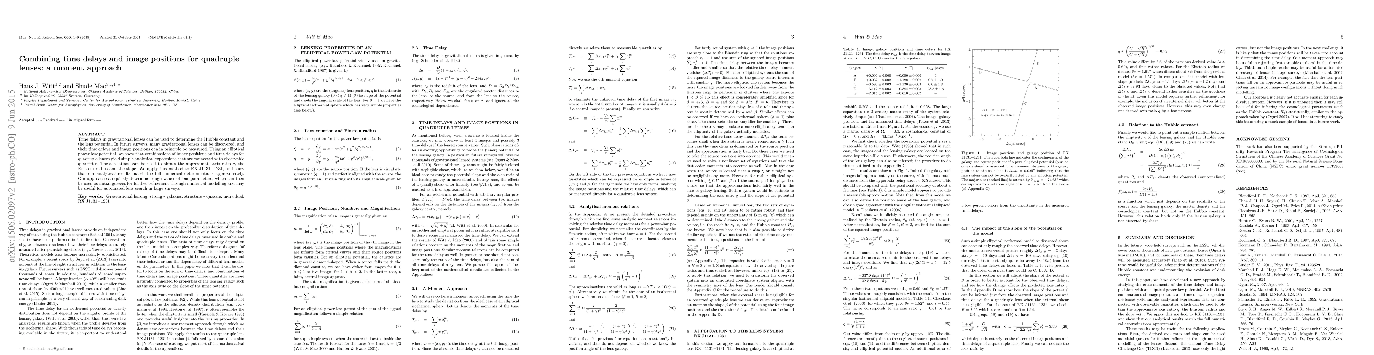 The paper presents analytical expressions for the relative moments of time delays and image positions in quadruple lens systems, which are rotationally invariant and depend only on observable quantities.