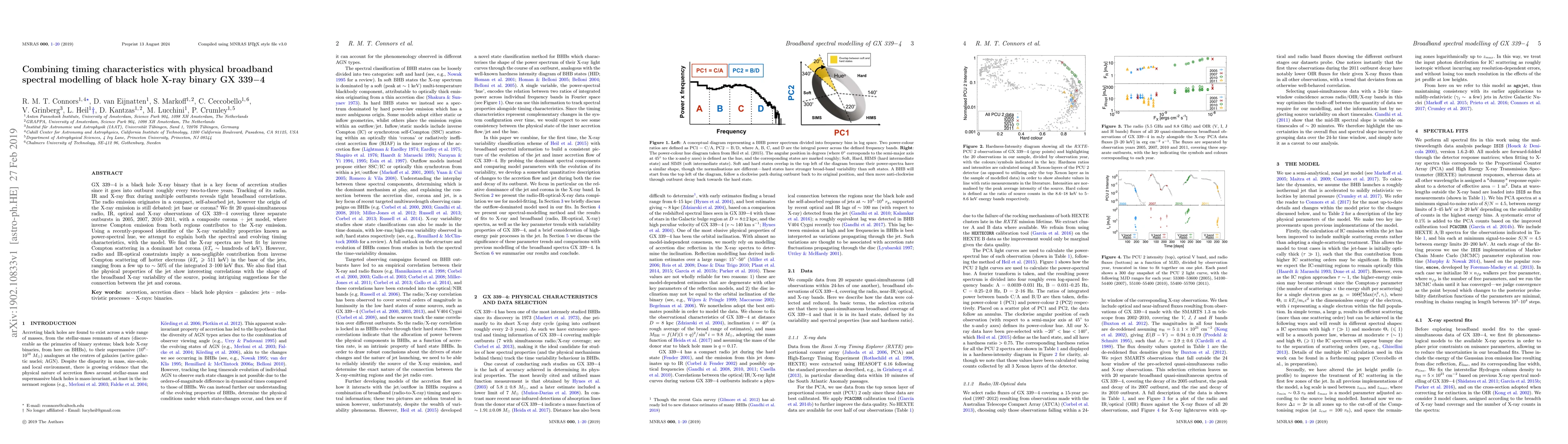 Researchers studied black hole X-ray binary GX~339$-$4, finding that X-ray emission comes from a hot corona with inverse Compton scattering, while radio emission originates from a compact jet base with some contribution from the corona.