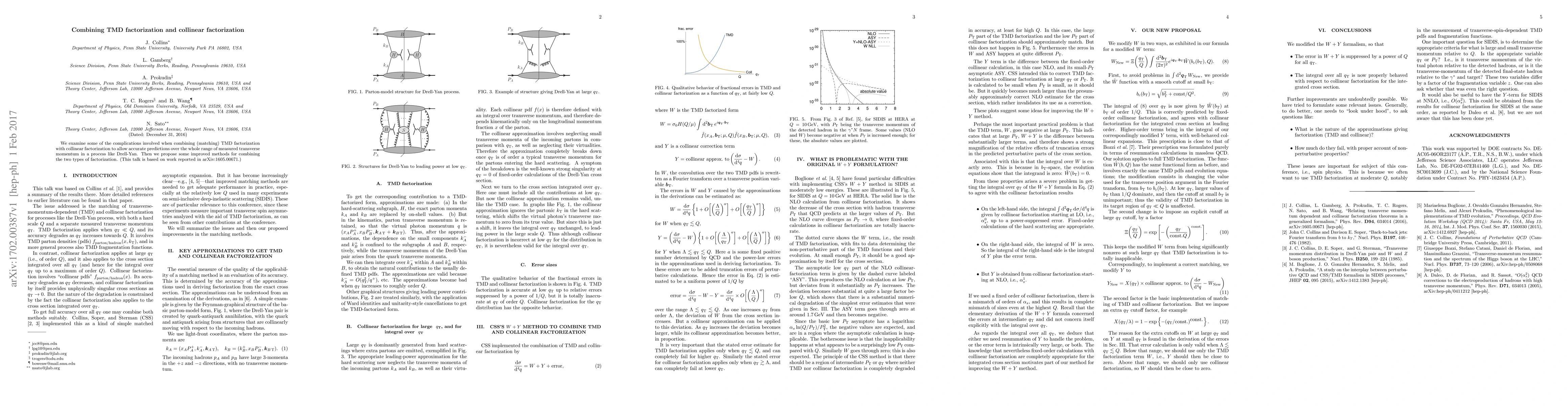 We examine some of the complications involved when combining (matching) TMD factorization with collinear factorization to allow accurate predictions over the whole range of measured transverse momentum in a process like Drell-Yan. Then we propose some improved methods for combining the two types of factorization. (This talk is based on work reported in arXiv:1605.00671.)