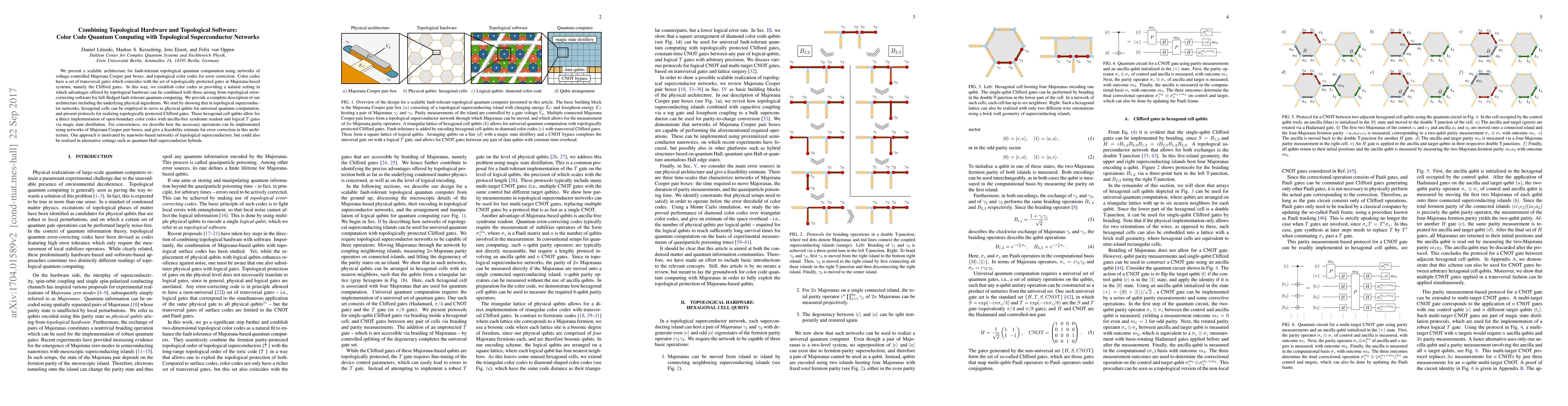 We present a scalable architecture for fault-tolerant topological quantum computation using networks of voltage-controlled Majorana Cooper pair boxes, and topological color codes for error correction. Color codes have a set of transversal gates which coincides with the set of topologically protected gates in Majorana-based systems, namely the Clifford gates. In this way, we establish color codes as providing a natural setting in which advantages offered by topological hardware can be combined with those arising from topological error-correcting software for full-fledged fault-tolerant quantum computing. We provide a complete description of our architecture including the underlying physical ingredients. We start by showing that in topological superconductor networks, hexagonal cells can be employed to serve as physical qubits for universal quantum computation, and present protocols for realizing topologically protected Clifford gates. These hexagonal cell qubits allow for a direct implementation of open-boundary color codes with ancilla-free syndrome readout and logical $T$-gates via magic state distillation. For concreteness, we describe how the necessary operations can be implemented using networks of Majorana Cooper pair boxes, and give a feasibility estimate for error correction in this architecture. Our approach is motivated by nanowire-based networks of topological superconductors, but could also be realized in alternative settings such as quantum Hall-superconductor hybrids.