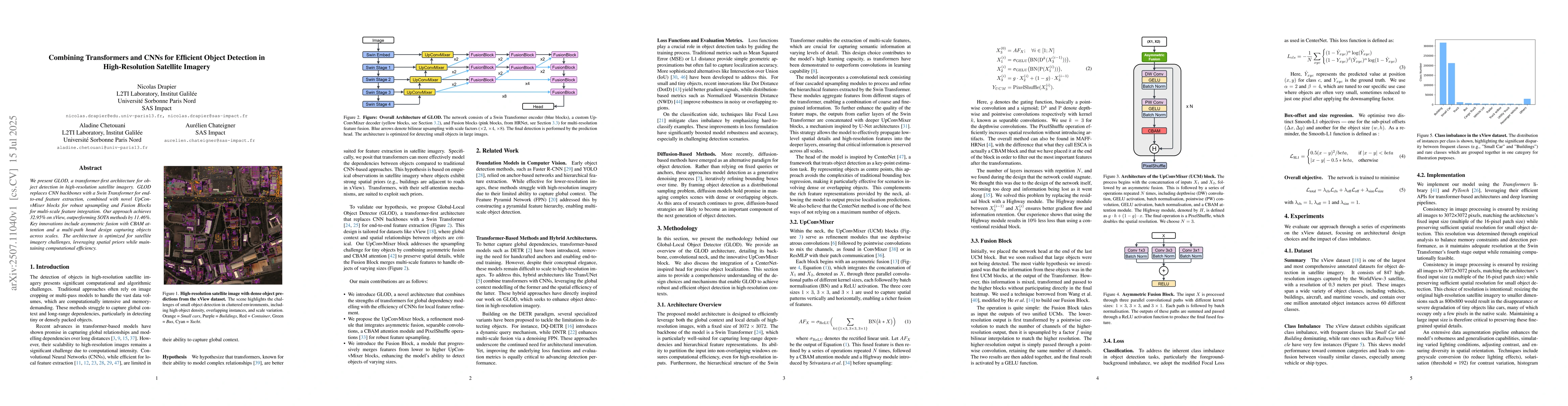We present GLOD, a transformer-first architecture for object detection in high-resolution satellite imagery. GLOD replaces CNN backbones with a Swin Transformer for end-to-end feature extraction, combined with novel UpConvMixer blocks for robust upsampling and Fusion Blocks for multi-scale feature integration. Our approach achieves 32.95\% on xView, outperforming SOTA methods by 11.46\%. Key innovations include asymmetric fusion with CBAM attention and a multi-path head design capturing objects across scales. The architecture is optimized for satellite imagery challenges, leveraging spatial priors while maintaining computational efficiency.